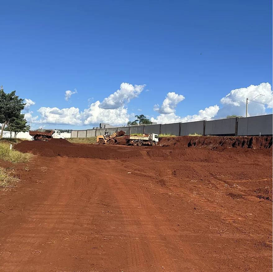 A terraplanagem avança em ritmo acelerado, preparando o terreno que dará vida a uma infraestrutura de padrão internacional com quadras e ambientes planejados para alta performance e convivência qualificada.